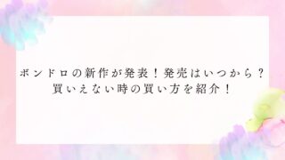 未分類 ボンドロの新作が発表!発売はいつから?買いえない時の買い方を紹介!