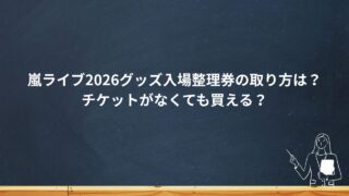 こんにちは!今回は2026年に開催される 嵐のラストツアー「ARASHI LIVE TOUR 2026『We are ARASHI』」 の公式グッズ販売について、特に グッズの「入場整理券」の取り方 や チケットがなくても購入できるのか? ...